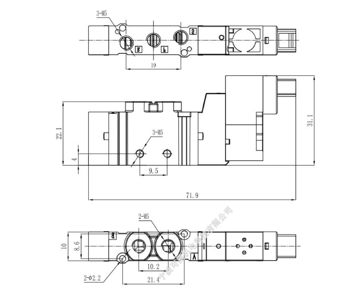 3系列二位五通低功率單電控換向閥